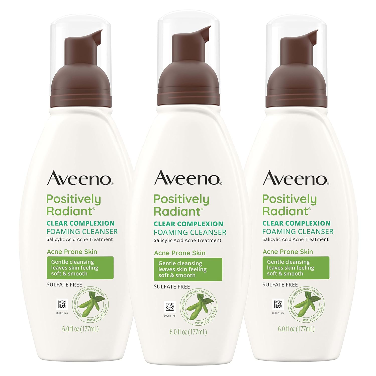 Aveeno Clear Complexion Foaming Oil-Free Facial Cleanser with Salicylic Acid Acne Medication for Breakout-Prone Skin & Soy Extracts, Hypoallergenic & Non-Comedogenic, 6 fl. oz, Pack of 3