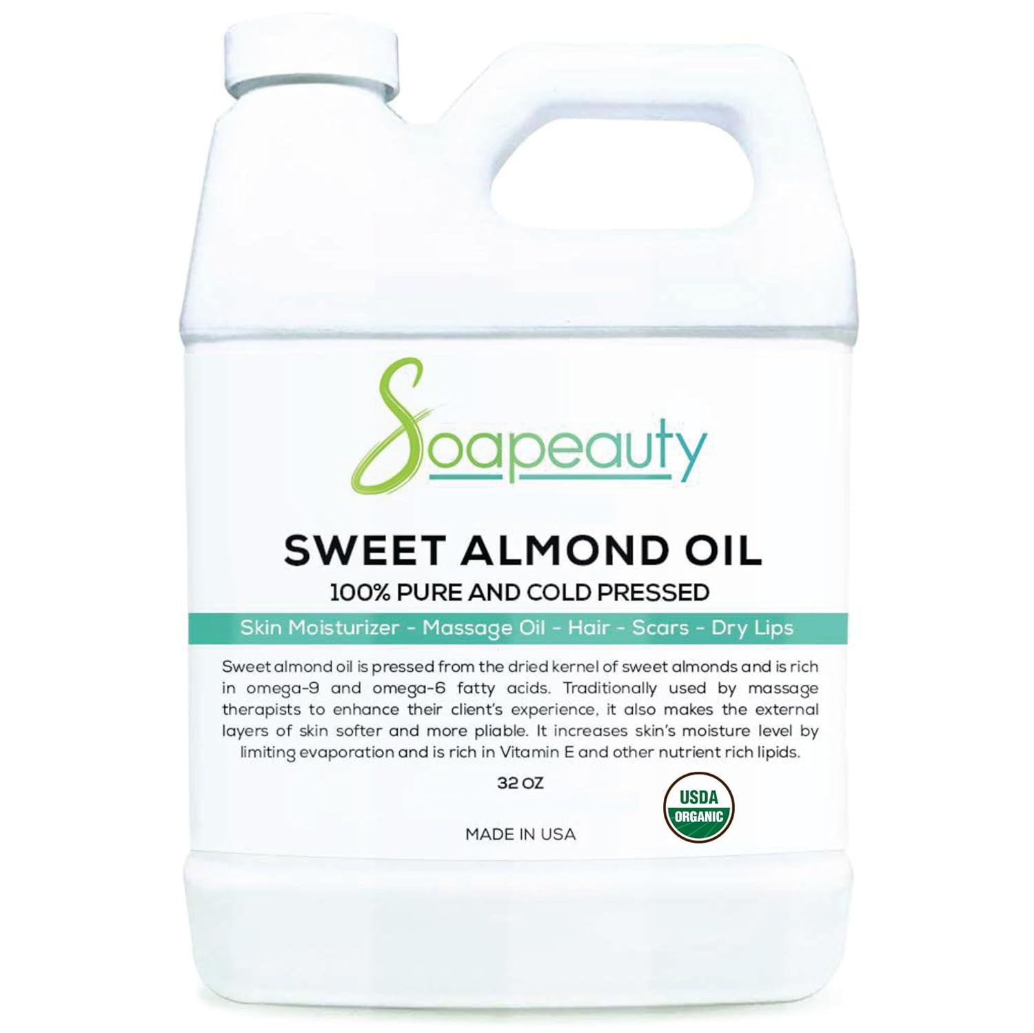 Soapeauty Sweet Almond Oil Cold Pressed Refined USDA Organic | 100% Pure Sweet Almond oil Available in Bulk | Carrier for Essential Oils, Almond oil for Skin, Face, and Hair, Soap Making | 32 fl oz