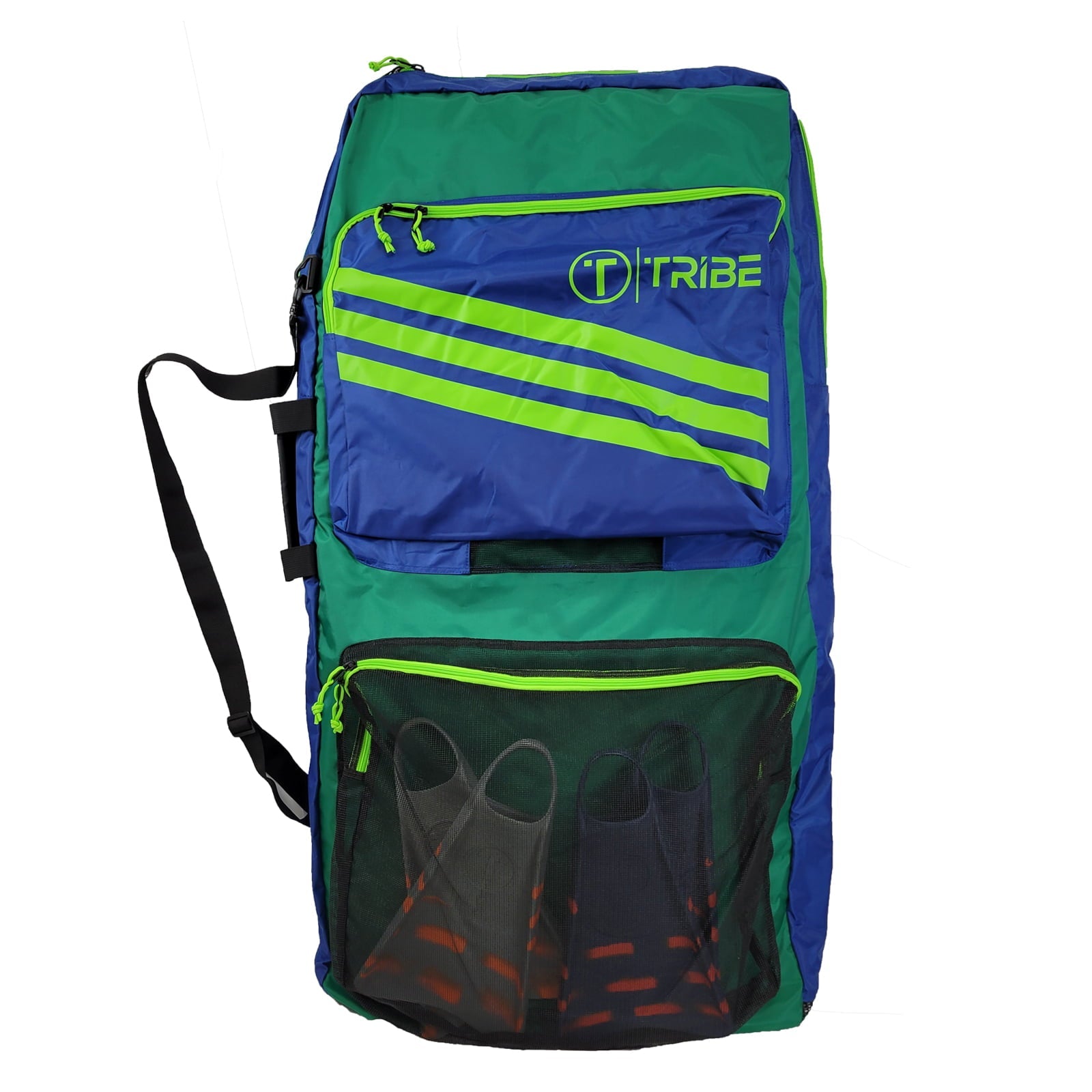• FUNCTION: Carry all your gear in one bag hands free! Including Boogie Boards, Skimboards, Swimfins, Towel, Sunscreen, Wetsuits, etc. Useful for families. Don't make multiple trips back to the car, or put this on your back and ride your bike or skateboard to the beach.